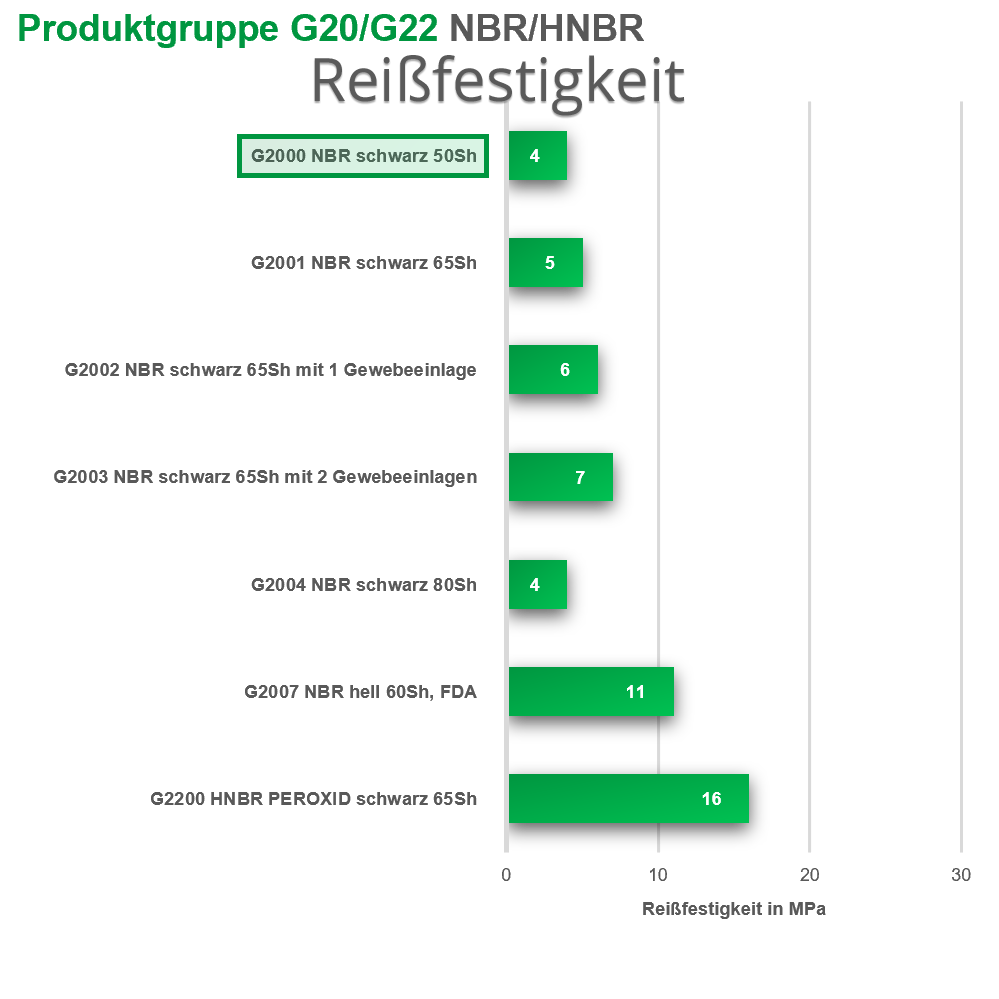 The NBR rubber (also called Perbunan) consists of acrylonitrile and butadiene, is a copolymer and is a rubber compound for many oil-resistant sealing applications. The rubber is characterized by excellent oil resistance, abrasion resistance and tensile strength, as well as a favorable aging behavior and a low compression set. The resistance to oils, fats (vegetable and animal), fuels and heating oils is excellent.