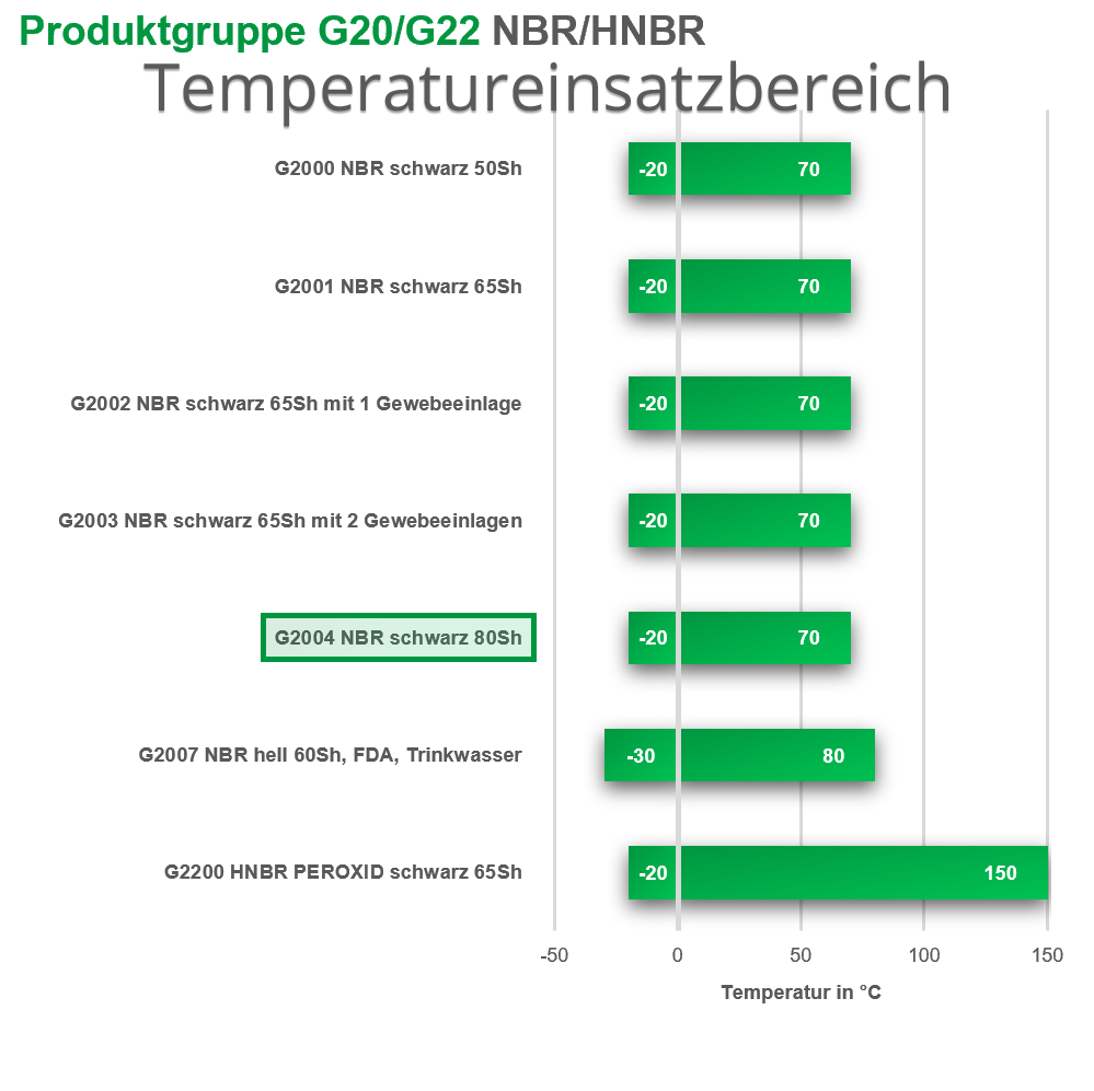 The NBR rubber (also called Perbunan) consists of acrylonitrile and butadiene, is a copolymer and is a rubber compound for many oil-resistant sealing applications. The rubber is characterized by excellent oil resistance, abrasion resistance and tensile strength, as well as a favorable aging behavior and a low compression set. The resistance to oils, fats (vegetable and animal), fuels and heating oils is excellent.