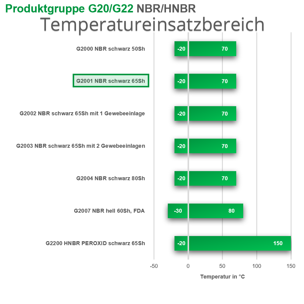 Das NBR Gummi (auch Perbunan genannt)besteht aus Acrylnitril und Butadien, ist ein Mischpolymerisat und ist eine Gummimischung für viele ölbeständige Dichtungsanwendungen. Das Gummi zeichnet sich durch eine hervorragende Ölbeständigkeit, Abriebfestigkeit und Zerreißfestigkeit aus, sowie ein günstiges Alterungsverhalten und einen geringen Druckverformungsrest. Die Widerstandfähigkeit gegen Öle, Fette (pflanzliche und tierische), Kraftstoffe und Heizöle ist ausgezeichnet.